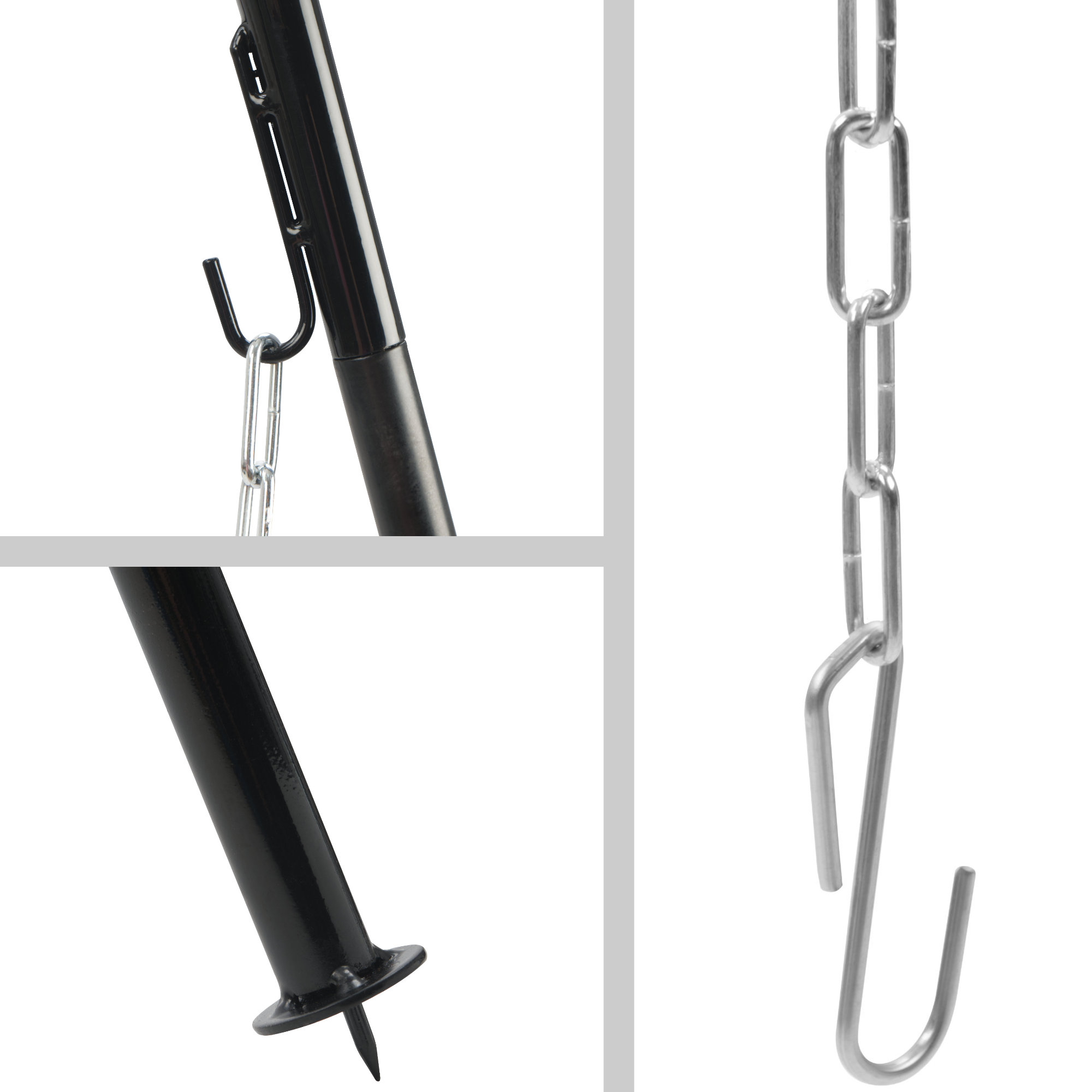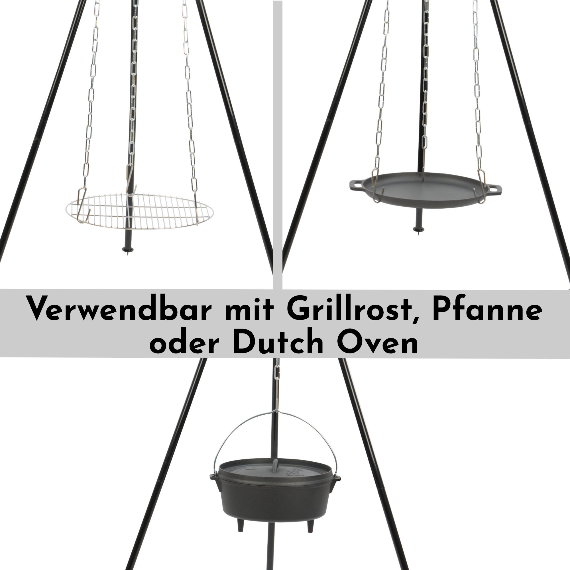 - Inklusive 4 Ketten mit Haken für Dutch Oven, Grillrost und Grillpfanne