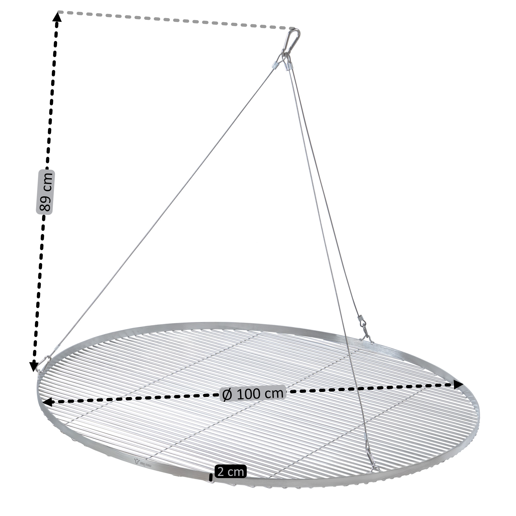 Mit einem Durchmesser von 100 cm bietet das Grillrost reichlich Platz für allerlei Grillgut. Der Edelstahl sorgt nicht nur für besondere Langlebigkeit, sondern ermöglicht auch eine schnelle und einfache Reinigung. So bleibt mehr Zeit fürs Genießen!