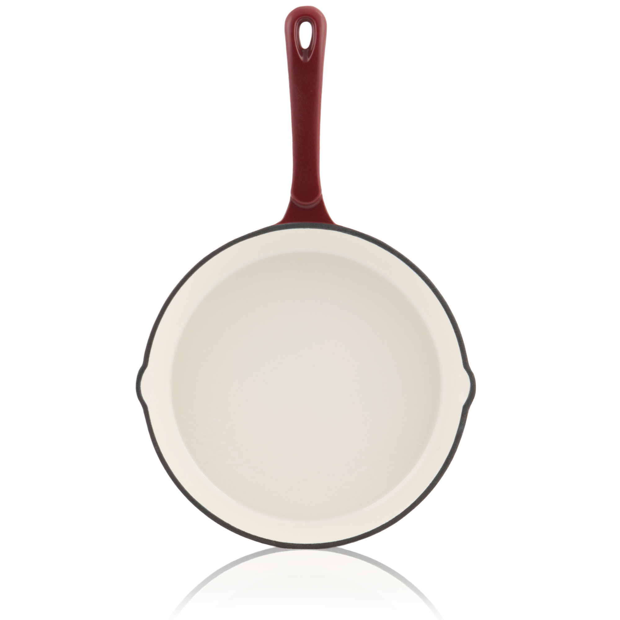 Dank der großen Masse verteilt das Set aus Gusseisen die Hitze gleichmäßig. Die Pfanne, der Bräter und die Lasagneform sind innen sowie außen emailliert. Aufgrund der Emaillierung eignet sich diese ideal zum Anbraten von Fleisch und langem Schmoren im eigenen Saft.