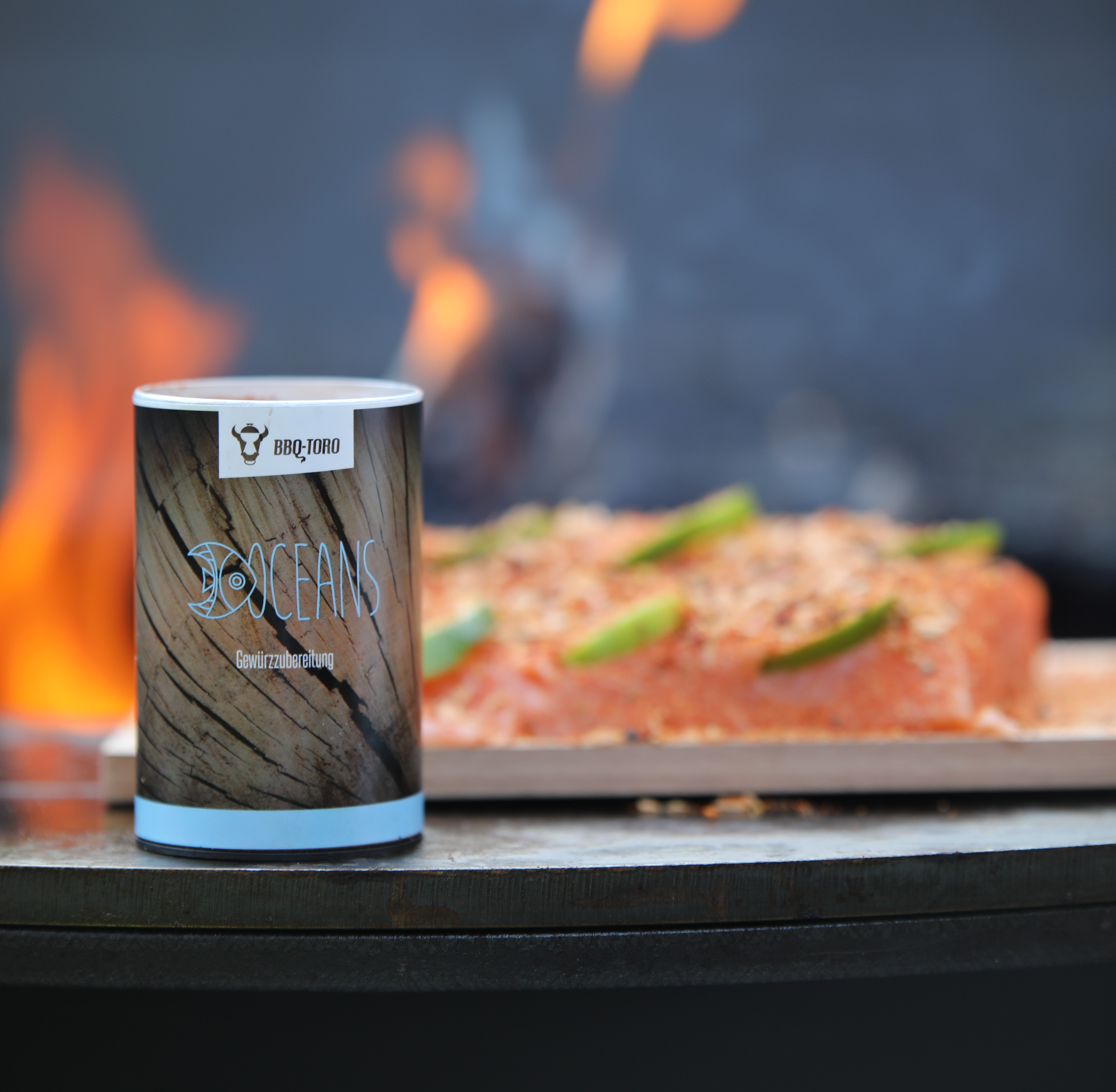 2. Grillgut vorbereiten: Fisch unter kaltem Wasser abspülen und mit Küchenpapier abtrocknen. Dann das Fischfilet mit etwas Öl und Fischgewürz wie z.B. OCEANS einreiben und mit etwas Zitronensaft, Pfeffer und Salz verfeinern.